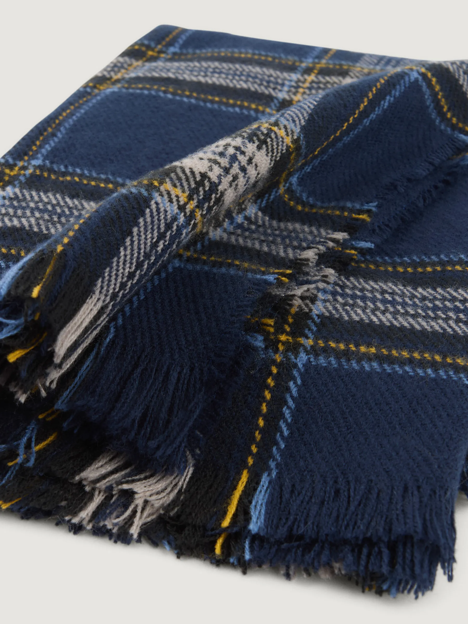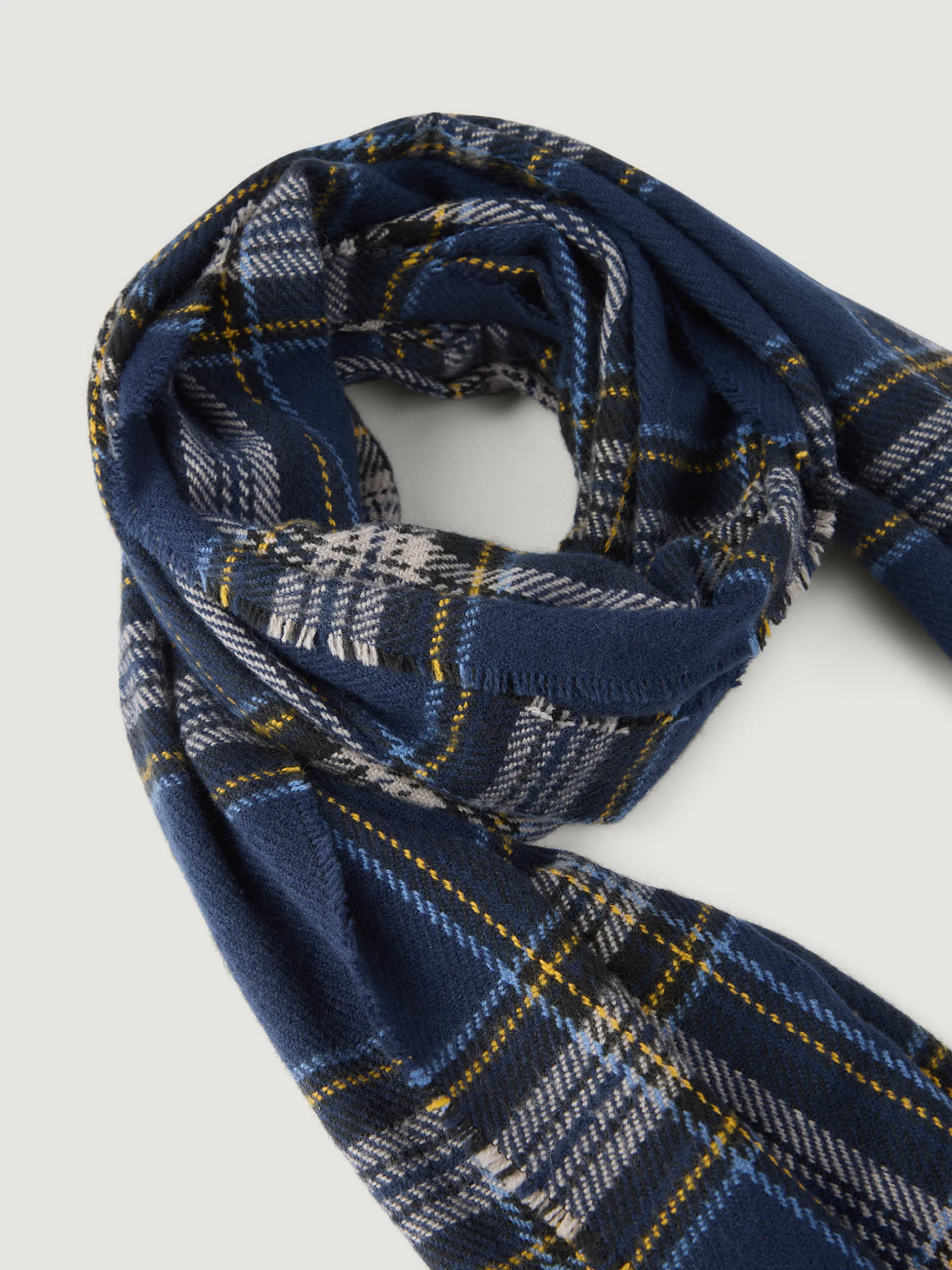 Bufandas con diseño de cuadros confeccionada en 100% acrílico. Terminación de flecos decorativos y tacto suave.