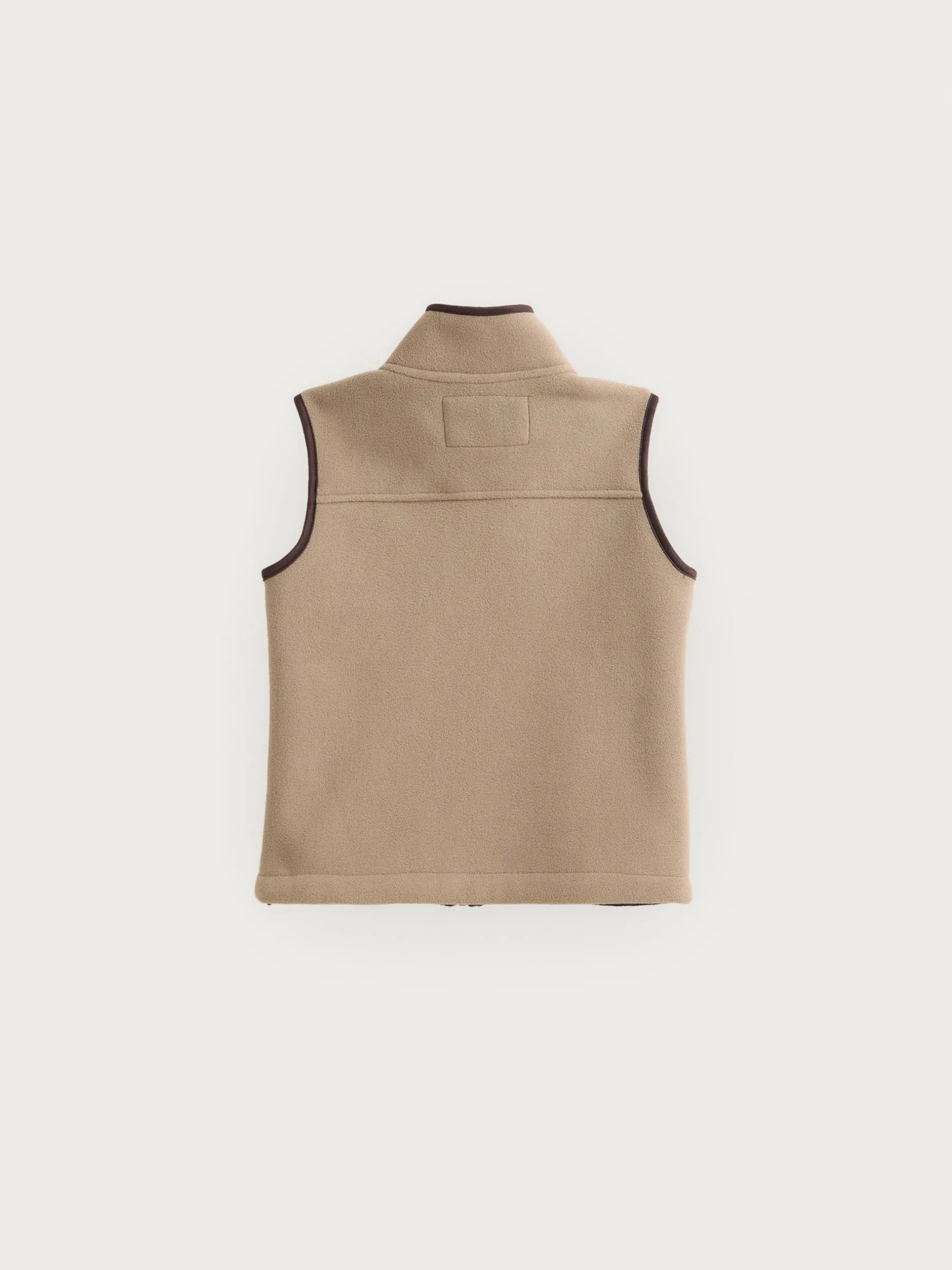 Chaleco confeccionado en tejido avivado en antelina en su exterior y forrado en su interior en borreguillo. Cuenta con cierre central mediante cremallera personalizada, dos bolsillos en su exterior y logo grabado en su frontal. Corte regular fit.