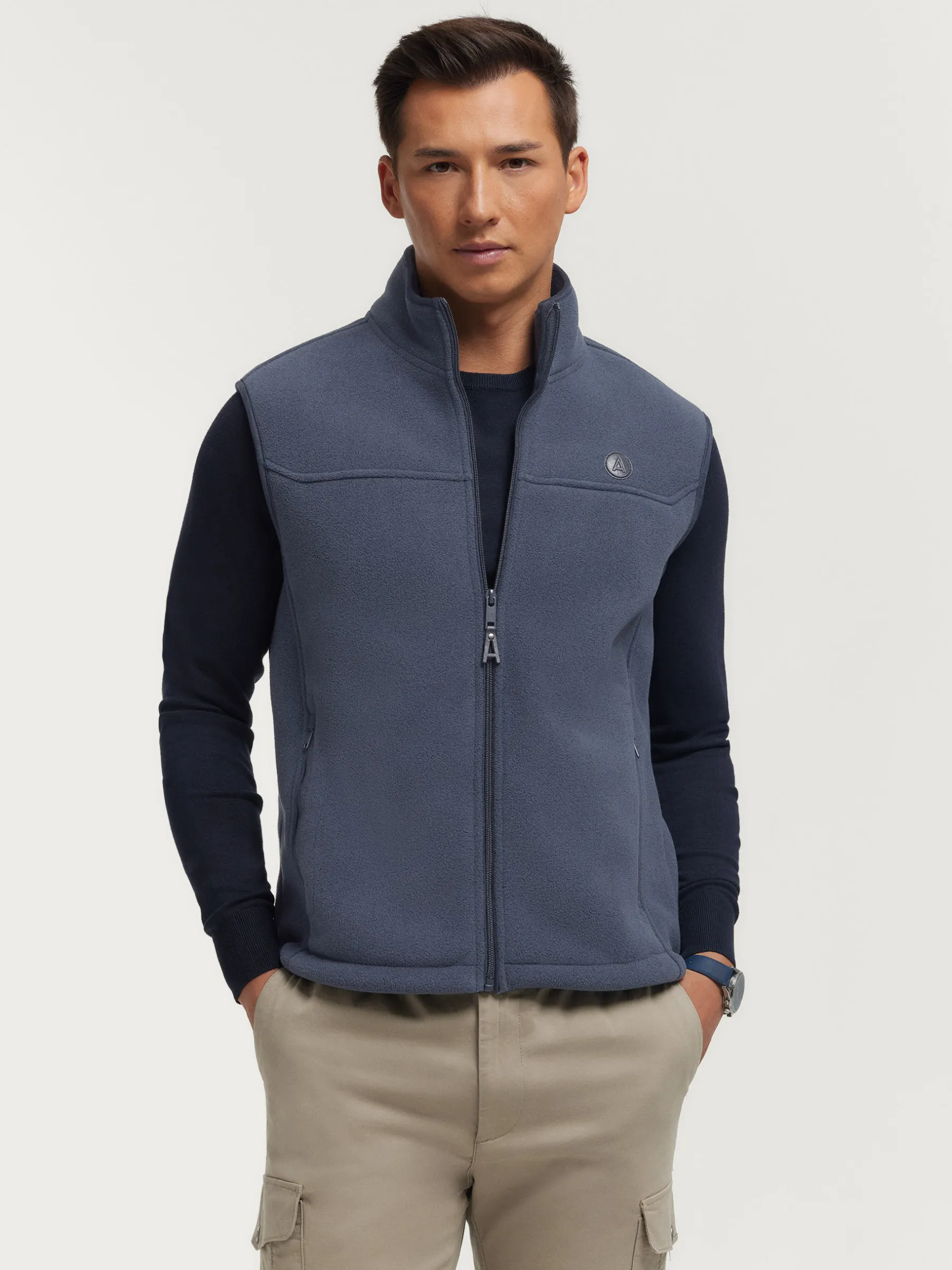 Chaleco confeccionado en tejido avivado en antelina en su exterior y forrado en su interior en borreguillo. Cuenta con cierre central mediante cremallera personalizada, dos bolsillos en su exterior y logo grabado en su frontal. Corte regular fit.