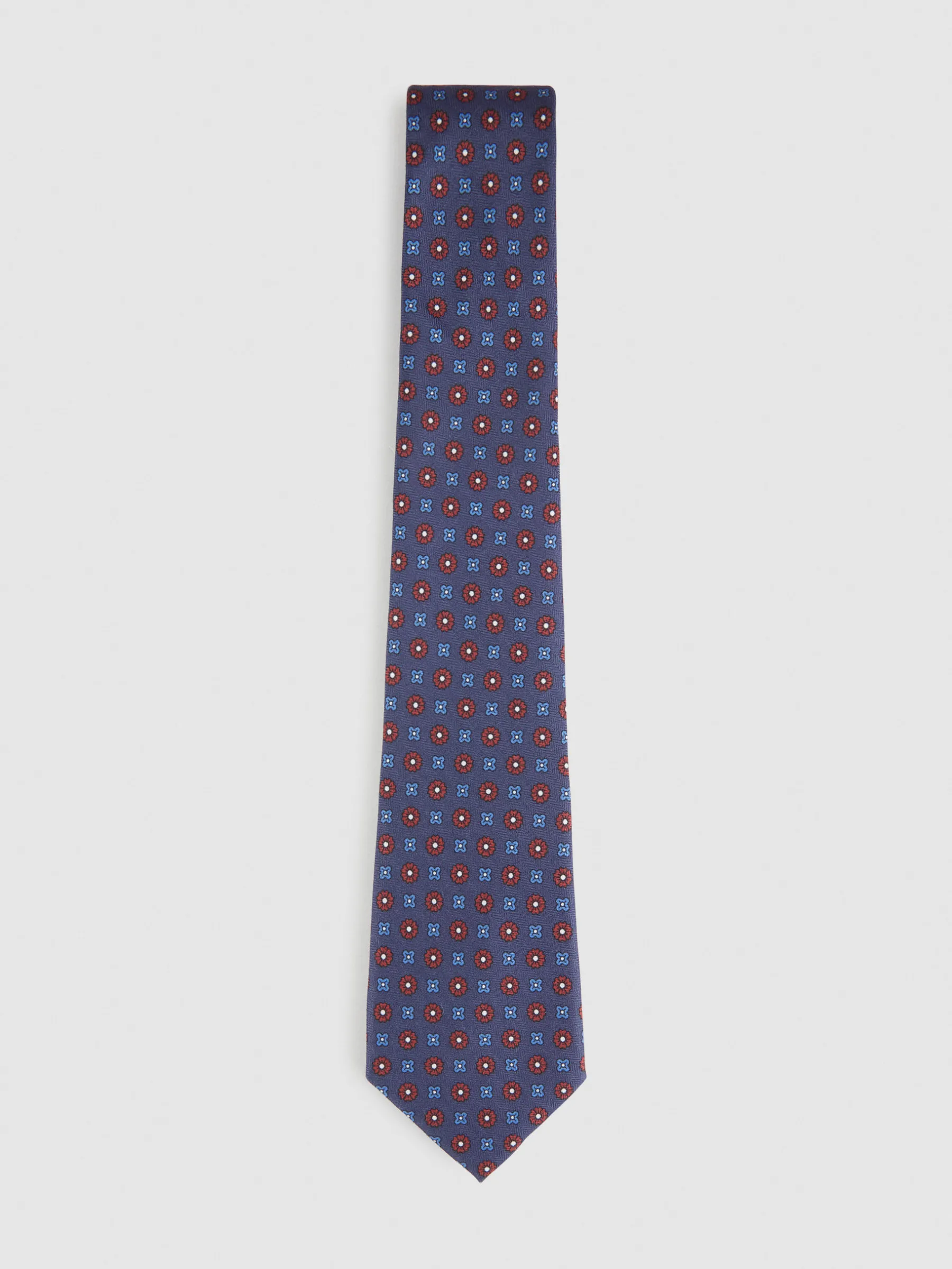 Corbata con diseño estampado personalizado confeccionada en 100% poliéster. Cuenta con el logo de la marca grabado en el interior.