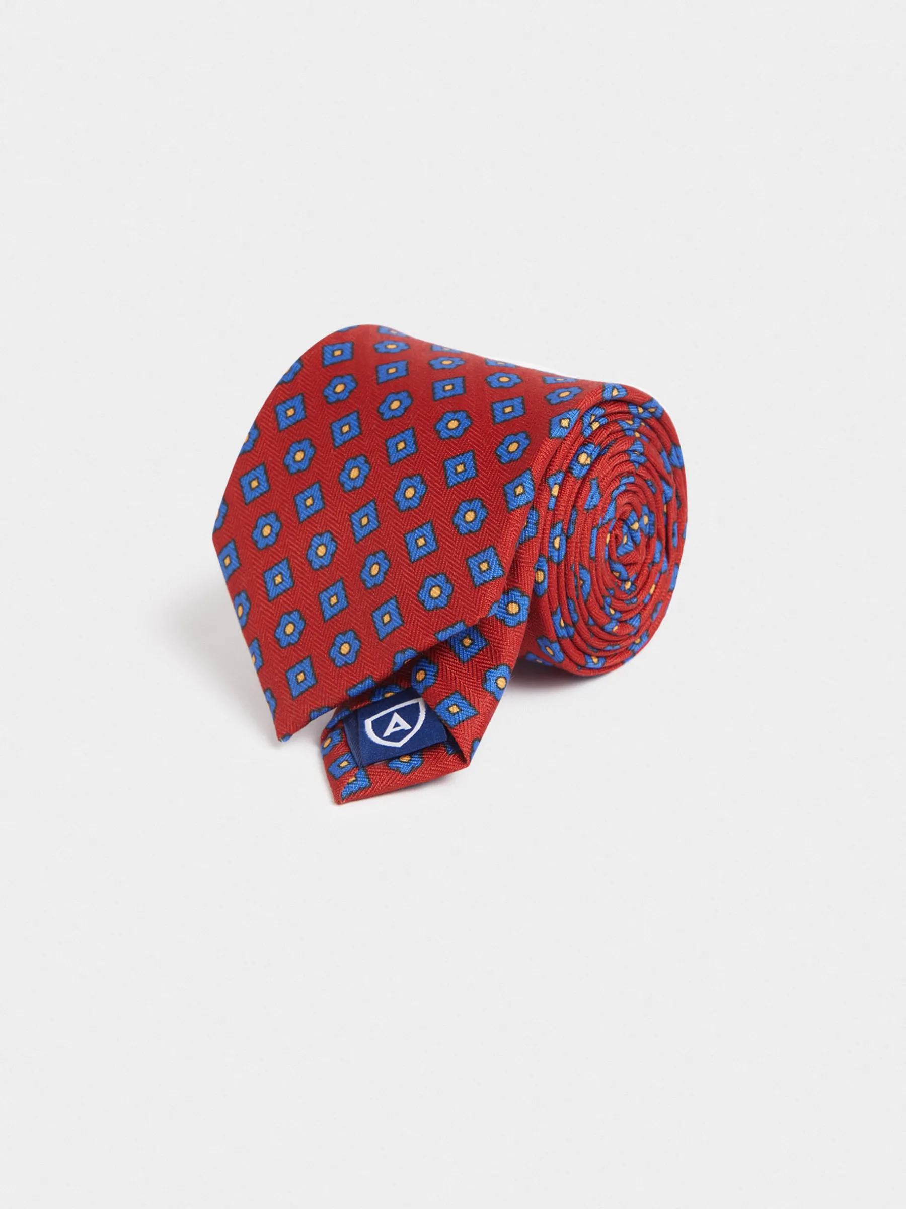 Corbata con diseño estampado personalizado confeccionada en 100% poliéster. Cuenta con el logo de la marca grabado en el interior.