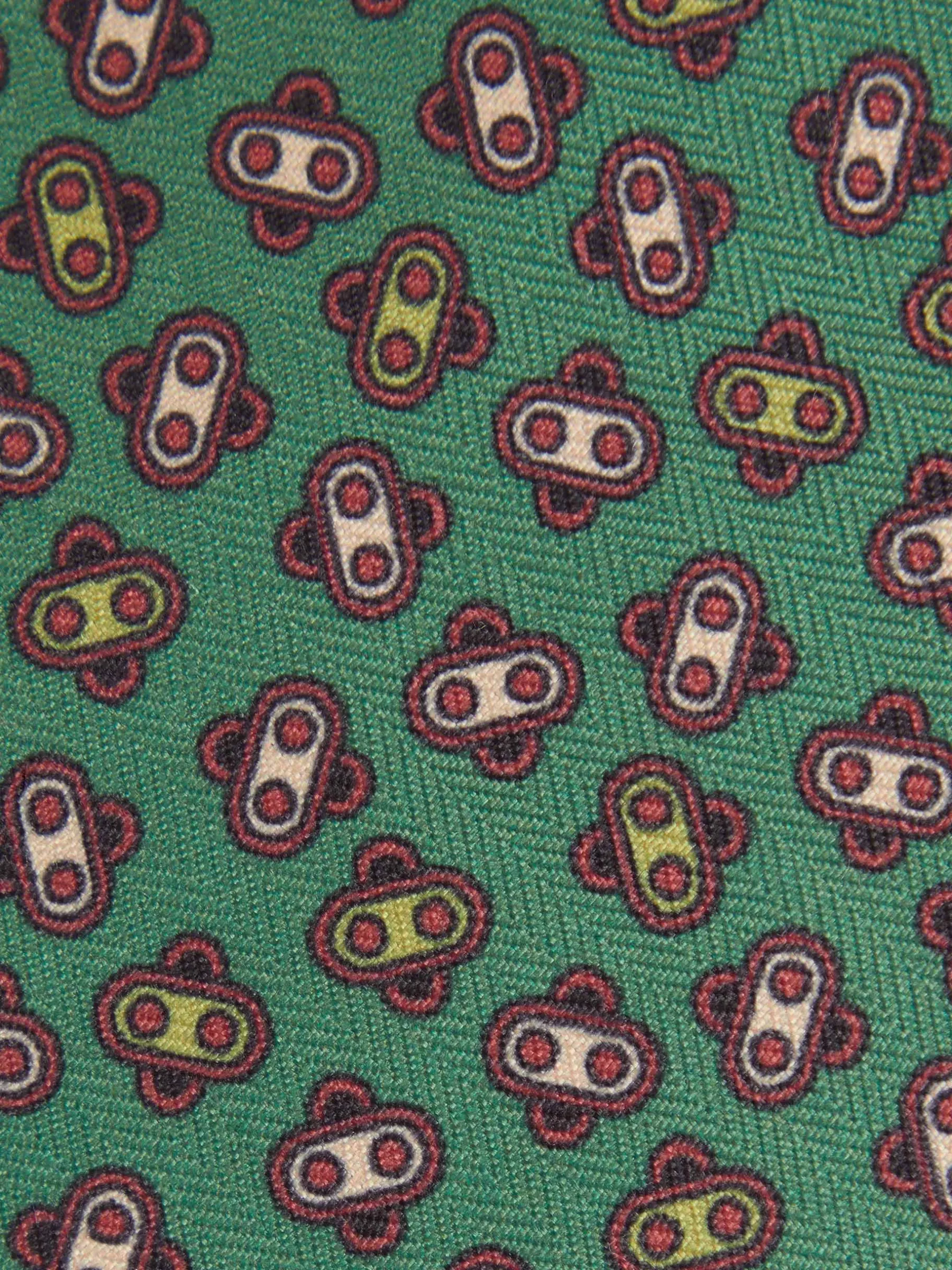 Corbata con diseño estampado personalizado confeccionada en 100% poliéster. Cuenta con el logo de la marca grabado en el interior.