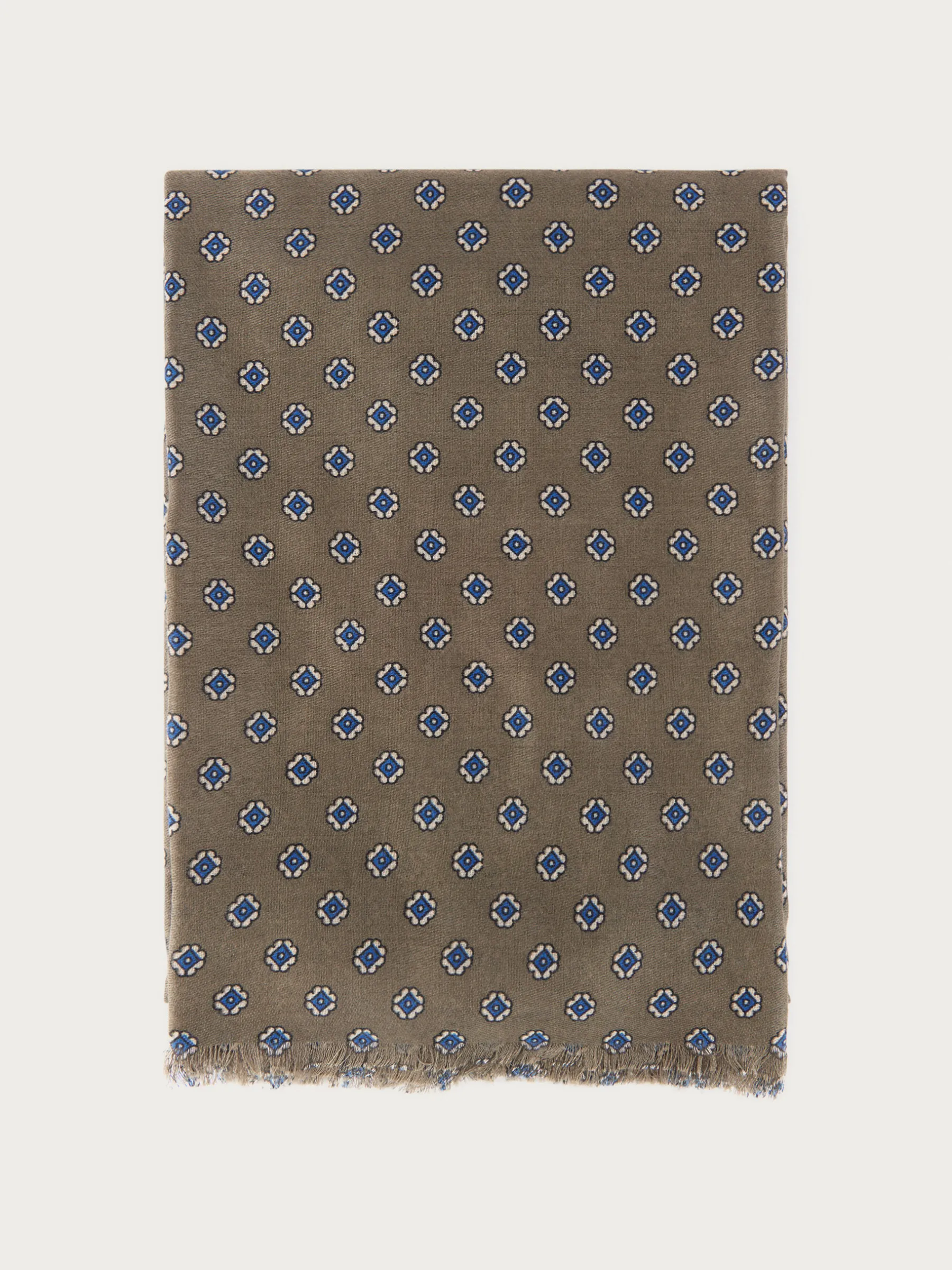 Foulard de diseño personalizado estampado confeccionado en tejido suave y cálido. Terminación con flecos.