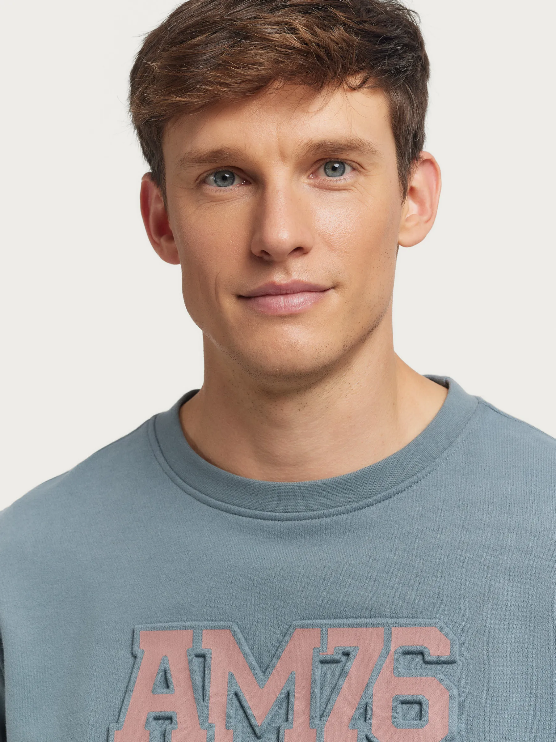 Sudadera de corte regular fit confeccionada en algodón. Cuenta con cuello redondo, estampación personalizada en el frontal y etiqueta canvas en el lateral. Puños y bajo en punto elástico.
