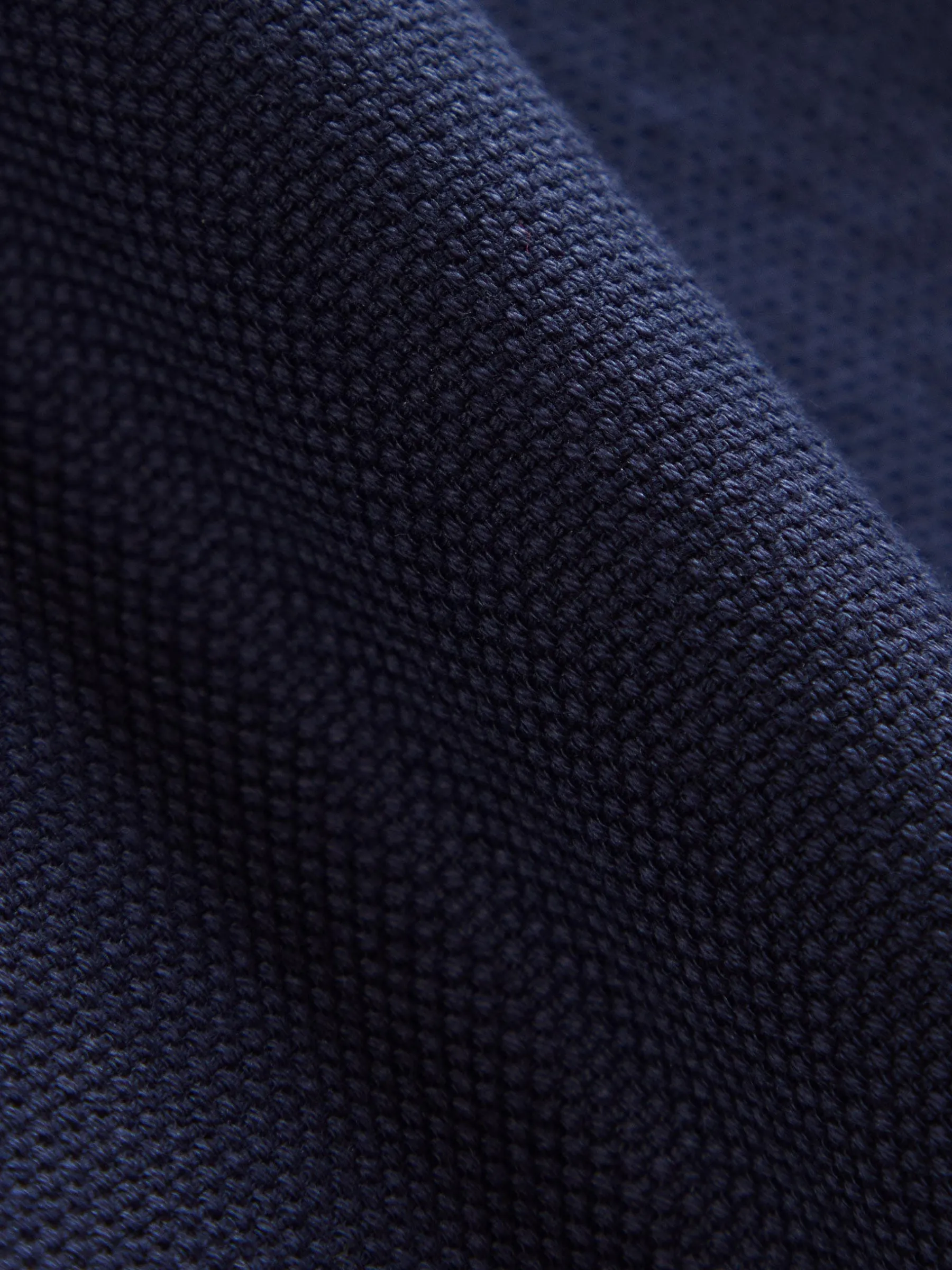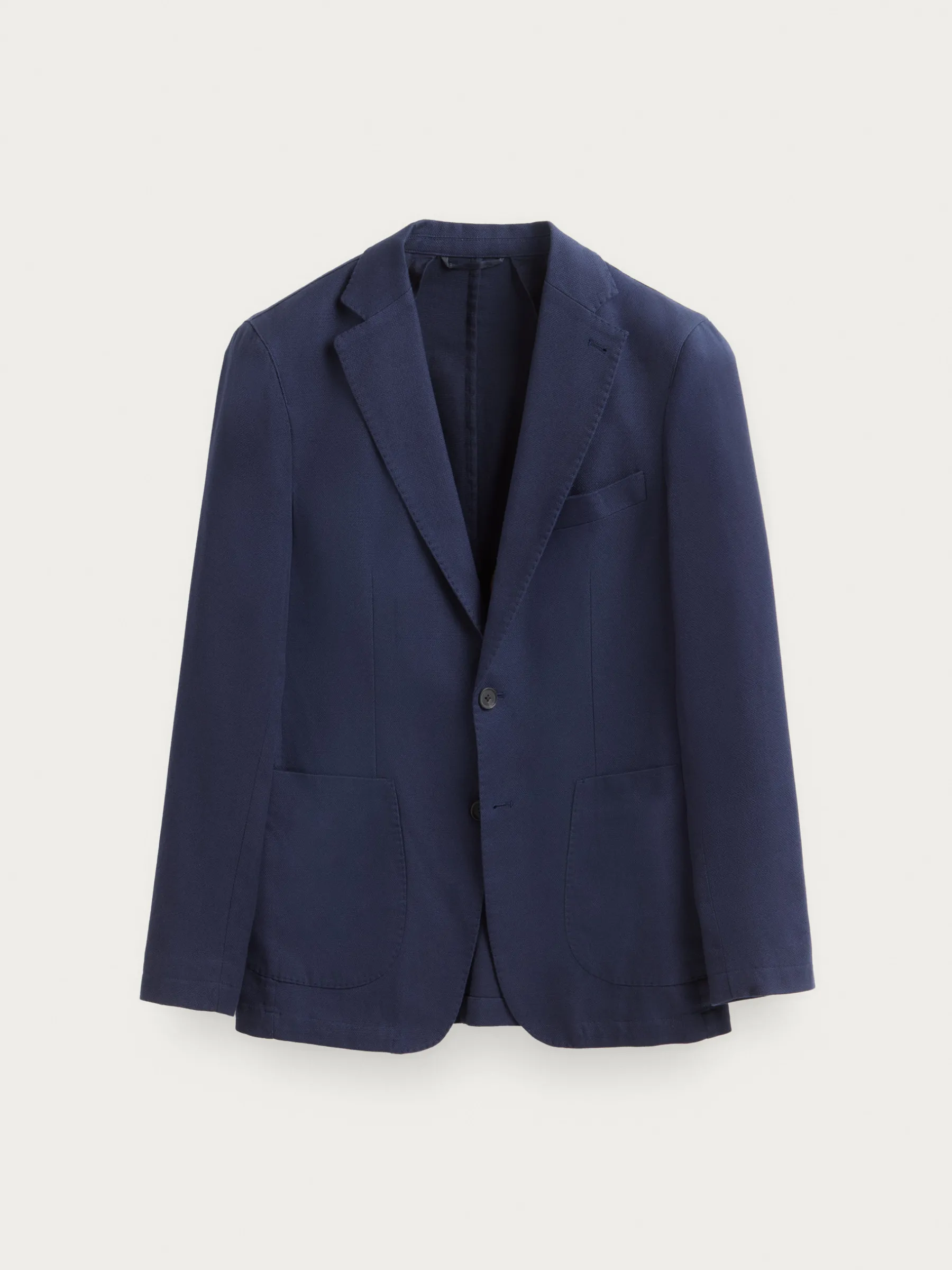 Americana confeccionada en tejido de esterilla de corte slim fit. Cuenta con cuello y solapa, cierre central simple mediante dos botones y puños con botones decorativos. Pinzas en el frontal, dos bolsillos de parche en la cintura y un bolsillo a la altura del pecho. Dos bolsillos en su interior.