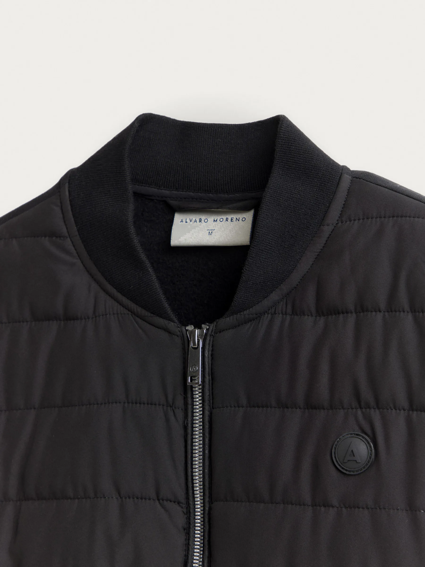 Cazadora estilo bomber con cuello y mangas en tejido de punto. Cuenta en su parte delantera con cierre central mediante cremallera, dos bolsillos y parche con el logo de la marca grabado en el pecho.