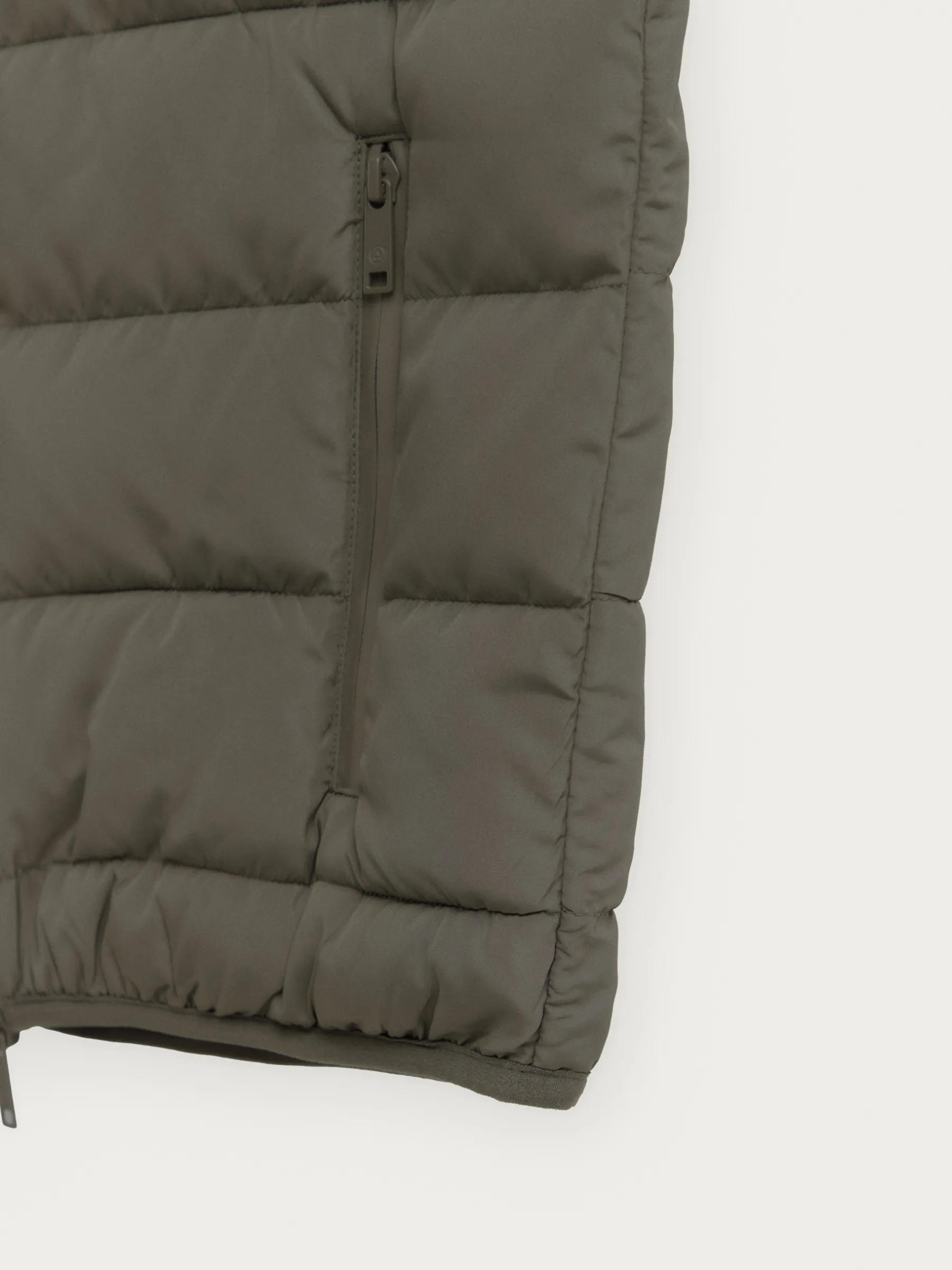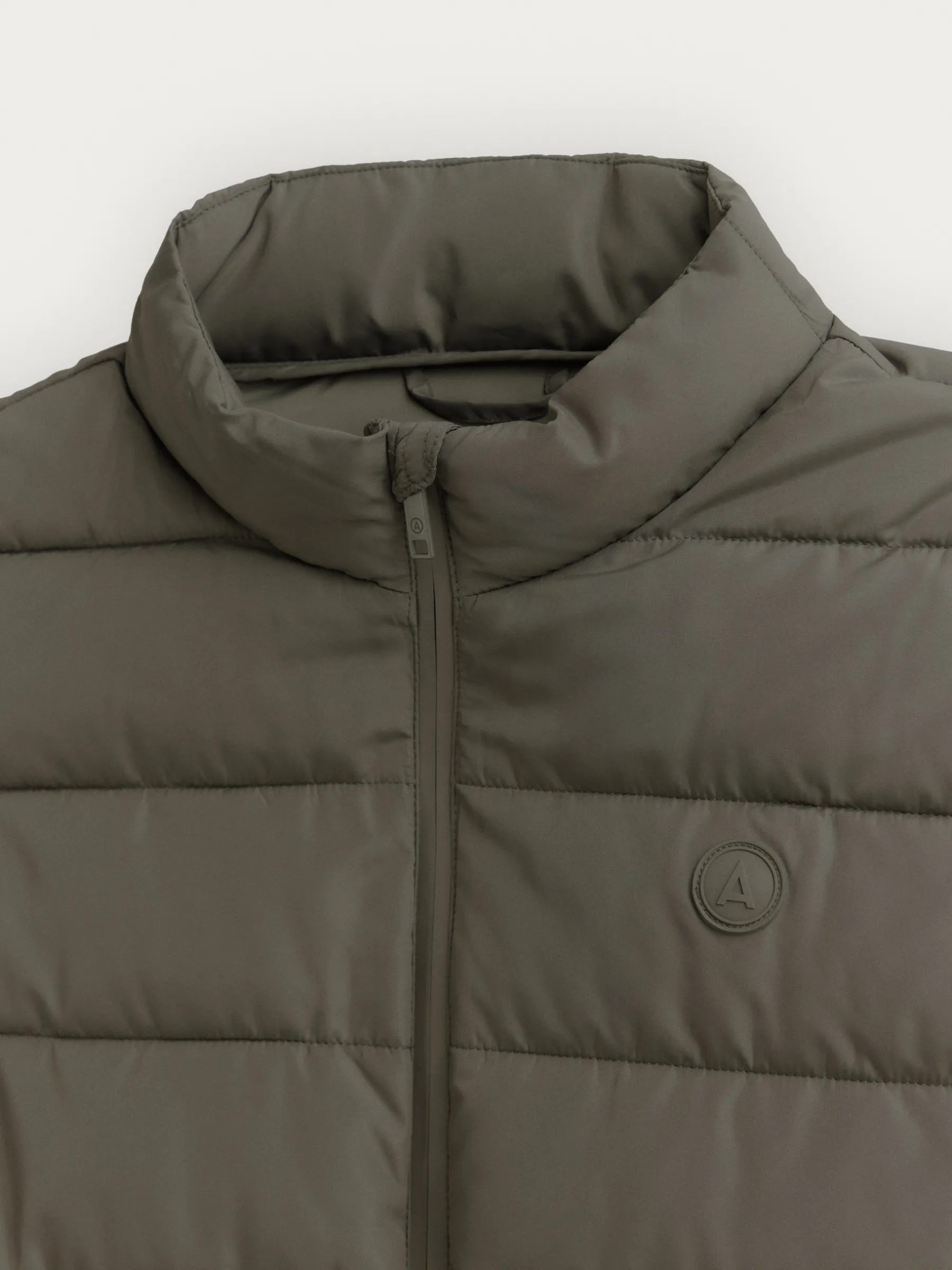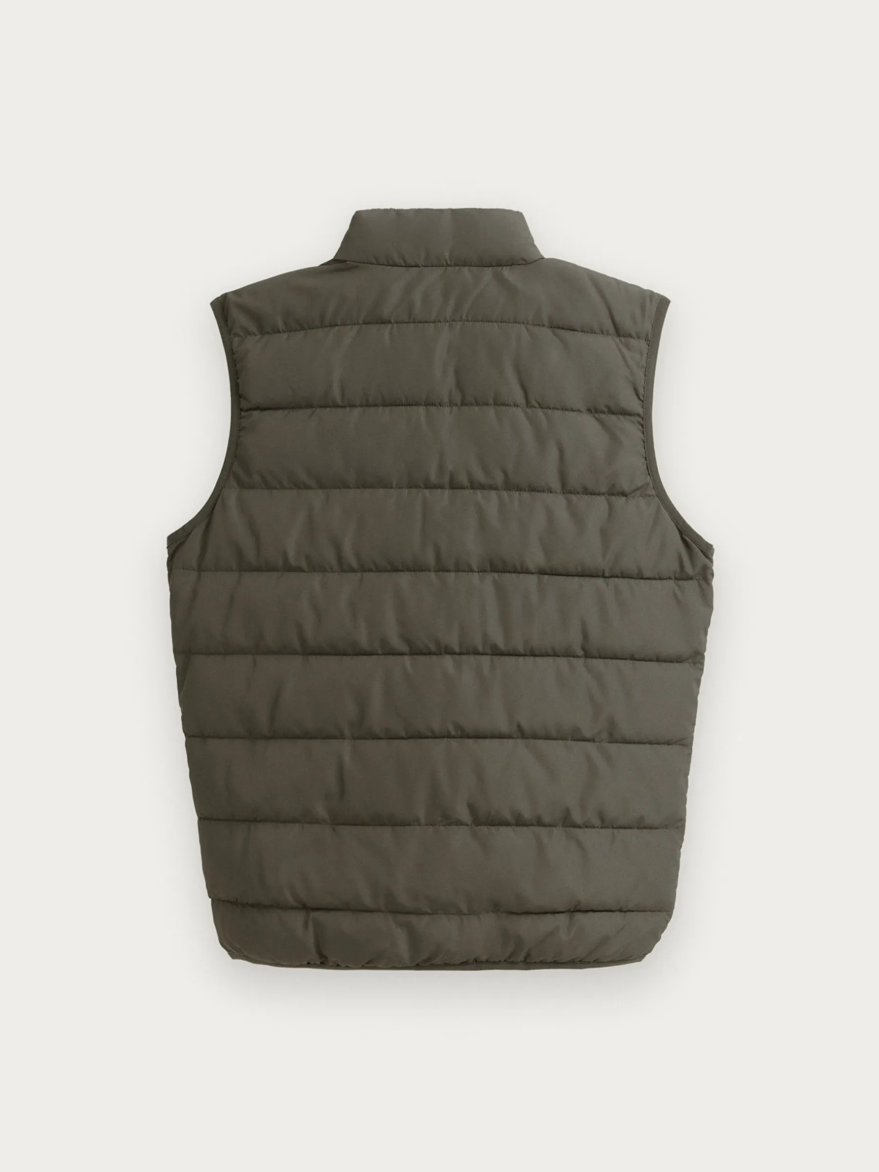 Chaleco acolchado con cuello subido y cierre central mediante doble cremallera, dos bolsillos a la altura de la cintura con cierre de cremallera y logo de la marca grabado en el frontal al tono. Elástico en la sisa y cintura. Cremalleras termoselladas. Interior con dos bolsillos y doble compartimento cada uno.