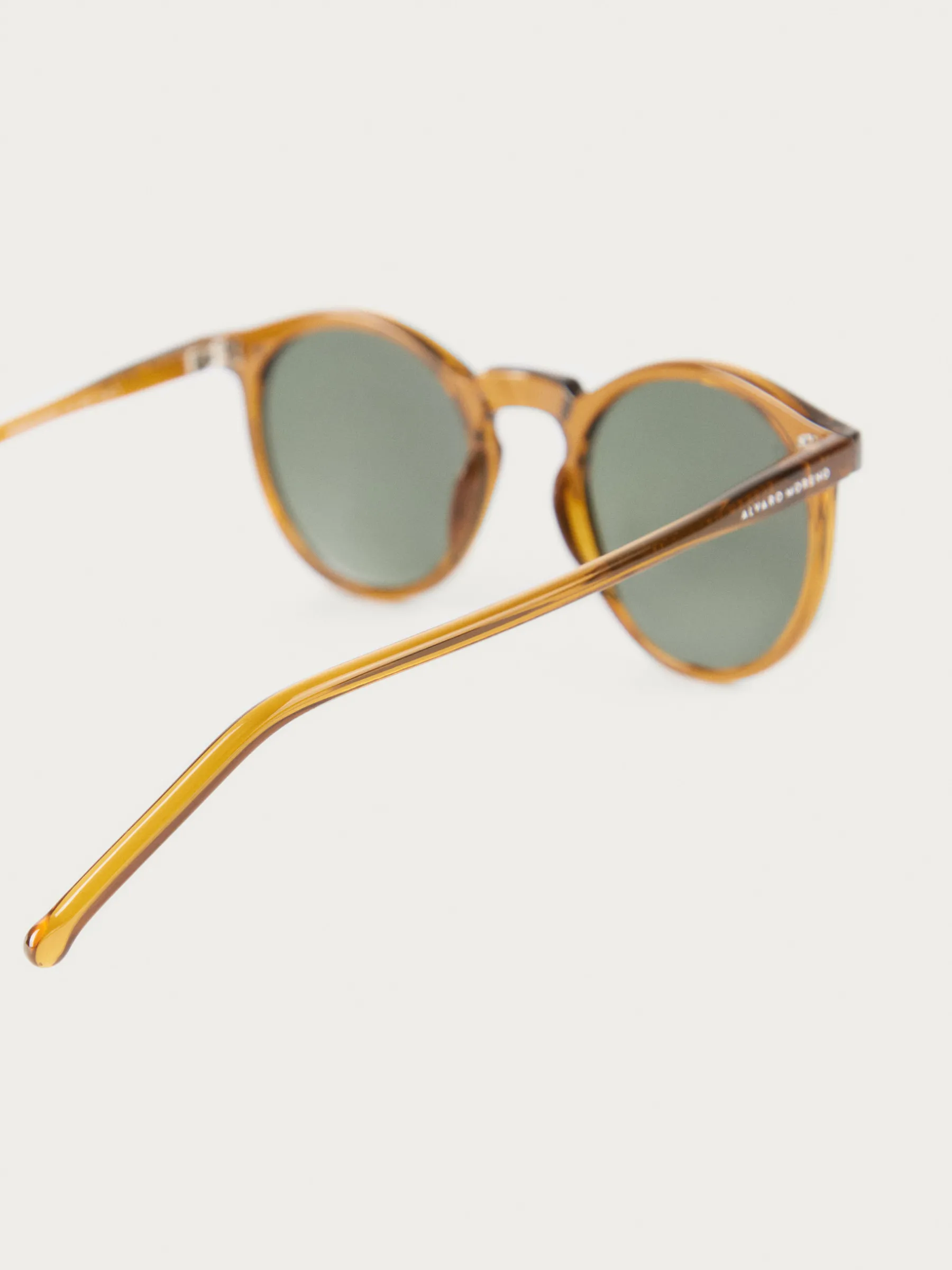 Gafas de sol de lentes redondas que cuentan con protección ultravioleta. Incluye caja y funda protectora.