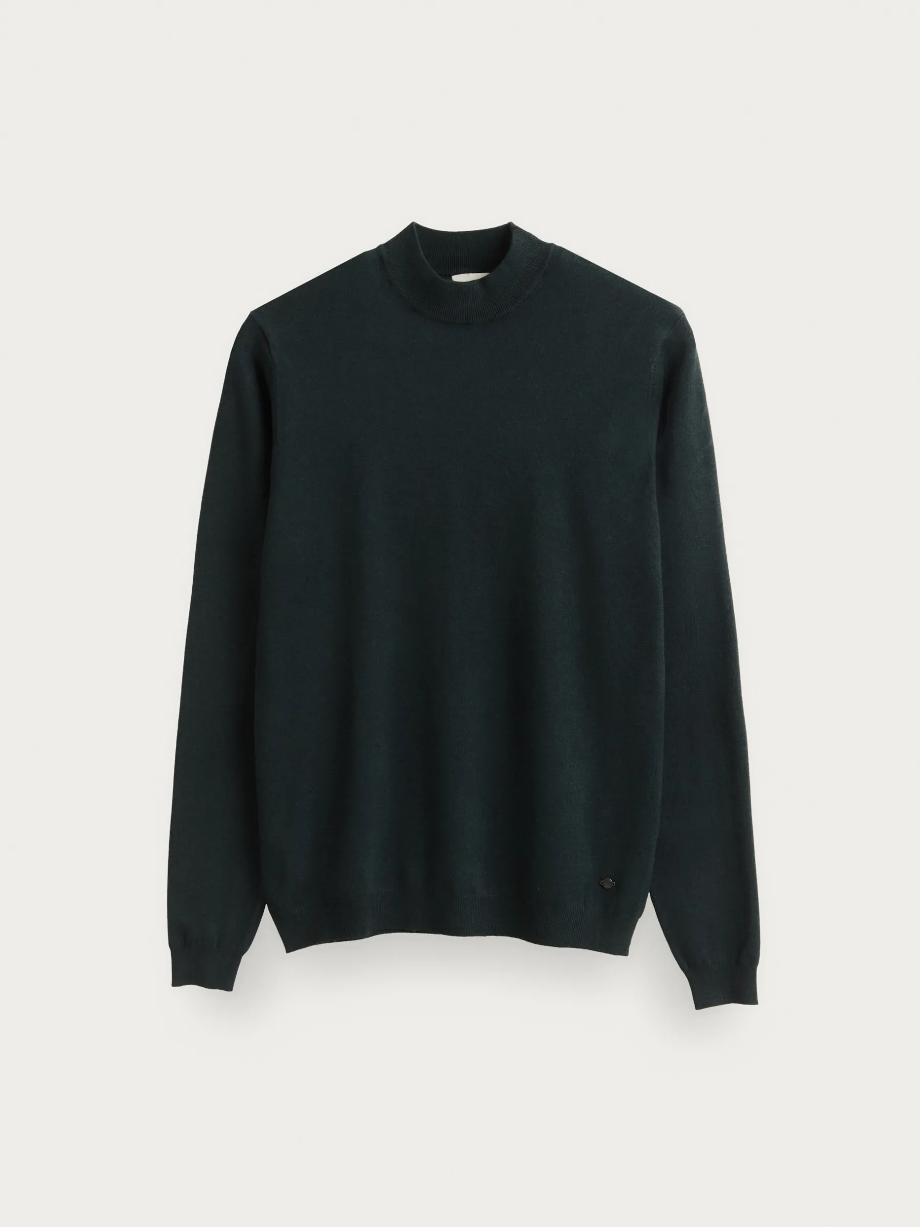 Jersey con cuello perkins y manga larga. Esta prenda de fina estructura, cuenta con detalle personalizado con el logo de la marca en el bajo y con sus puños, cintura y cuello ribeteados.